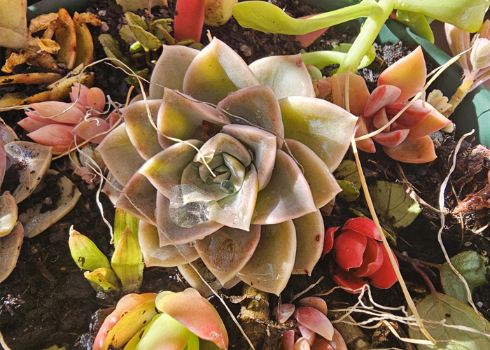 – Succulents and hardy plants/herbs we have exchanged and nurtured between our home gardens, planted in donated containers and plants,available in exchange for donations and contributions to our urban garden.