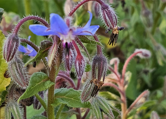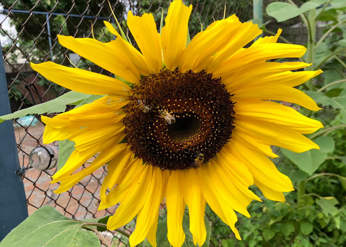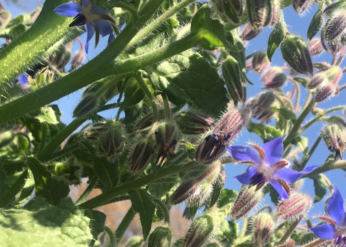 Grow Parkhurst practices companion planting which encourages a return of insects and bees to our urban environment. Some of what we do includes planting flowering cover crop. We are always nurturing nasturtiums and marigolds and planting borage; bees love the tiny blue flowers. We keep multiple flowering plants along the hedges of the garden to attract our neighbourhood bee community.